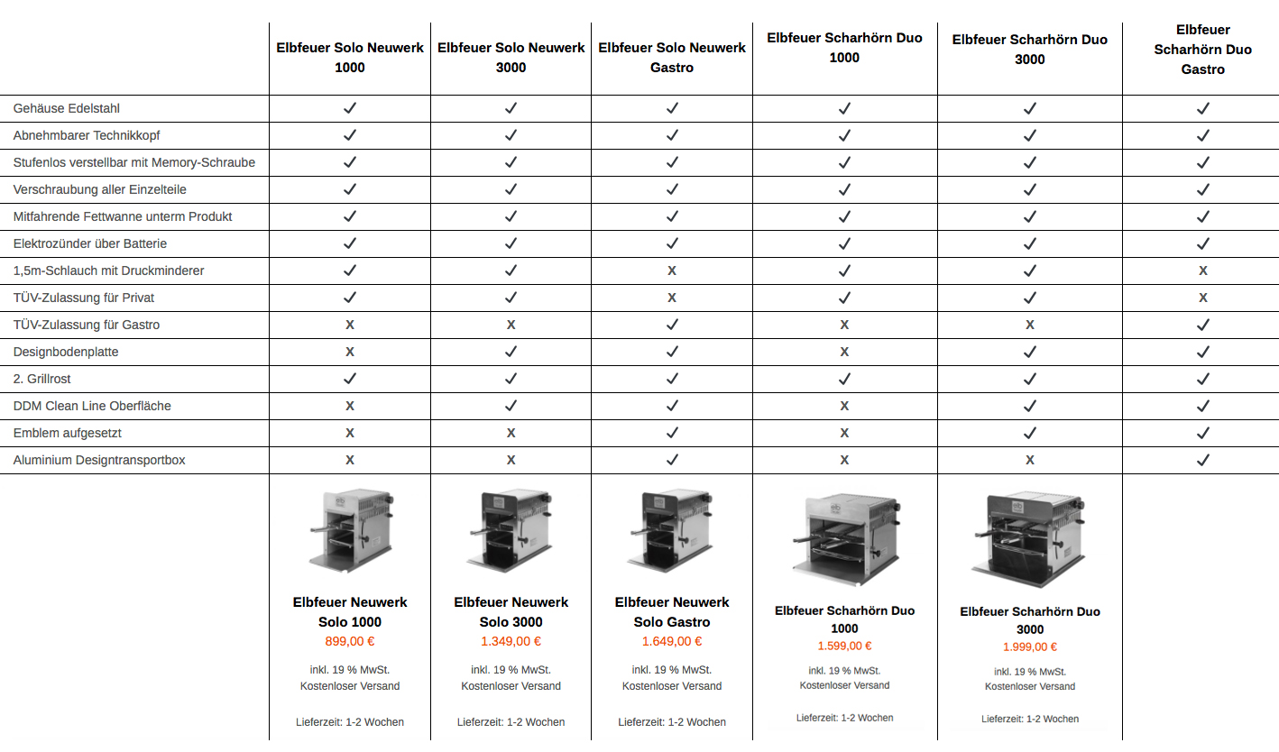 Hier finden Sie eine Produktübersicht aller "Elbfeuer" Modelle.