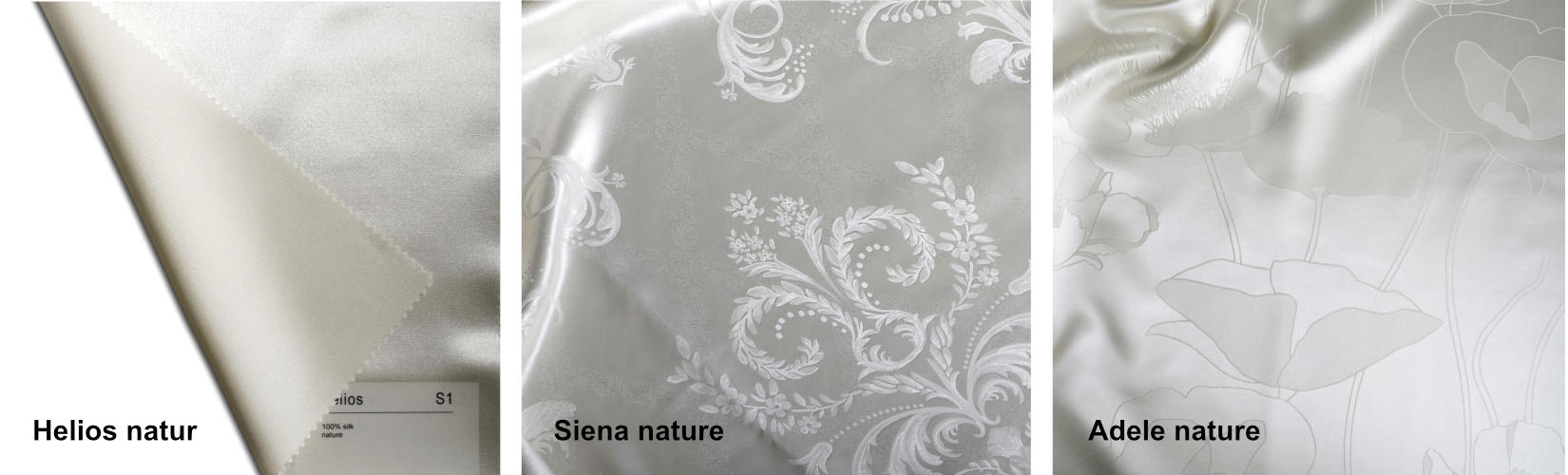 Seide ist ein Naturprodukt. Bitte beachten Sie die Pflegehinweise des Herstellers. Die Farbdarstellungen auf Ihrem Bildschirm können vom Originalfarbton abweichen. Dies ist technisch bedingt und leider nicht zu vermeiden. Fordern Sie deshalb Farbmuster bei uns an.